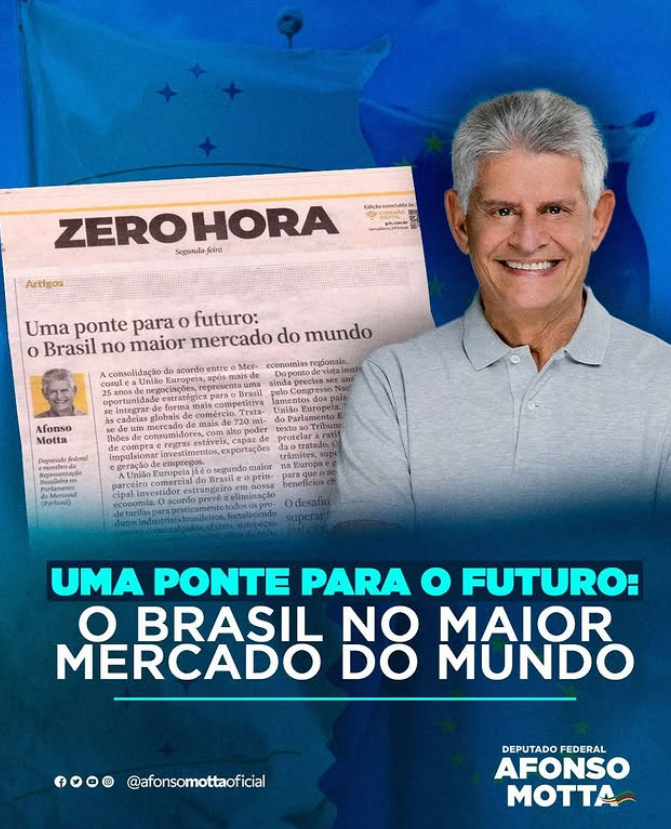 O Brasil não pode abrir mão dessa oportunidade histórica de ampliar mercados, atrair investimentos e fortalecer sua base produtiva. Mais do que nunca, é preciso firmeza, articulação e trabalho diplomático para que esse acordo se transforme em crescimento, emprego e desenvolvimento para o país.